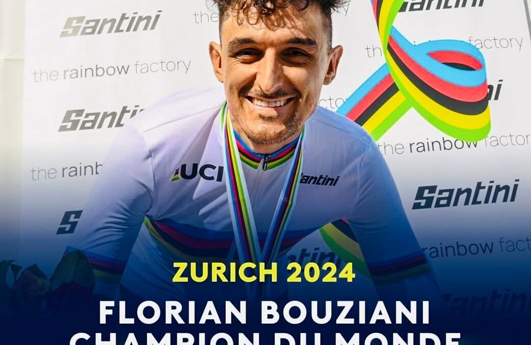 C’est avec une immense fierté que nous partageons une nouvelle exceptionnelle : Florian Bouziani, notre athlète d’exception, vient de décrocher le titre de Champion du Monde du Contre-la-Montre. Une performance qui consacre son talent, son travail acharné et son indéniable détermination.